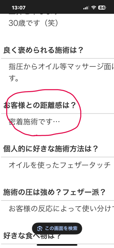 | 良く褒められる施術は? | 指圧からオイル等マッサージ面はいつも褒めて頂いてます。 |